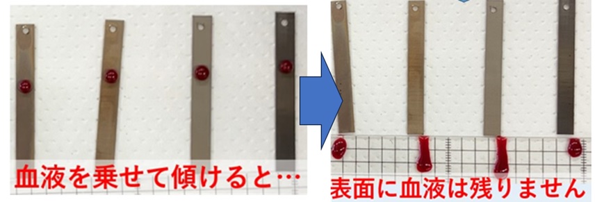 〇マイクロ流路チップなどの微細流路の親水処理 完成したチップ(パッケージ後)でも処理可能。さらに、局所的な処理もできます。 微細な流路に血液などの粘度の高いサンプルも通すことが可能になります! 〇ゴムのように水が撥ねる超撥水処理(LSA処理) メディカルクリエーションふくしまで技術奨励賞受賞! 血液も転がる表面で、焦げ付いた血液や組織も簡単に剥がれます。 |